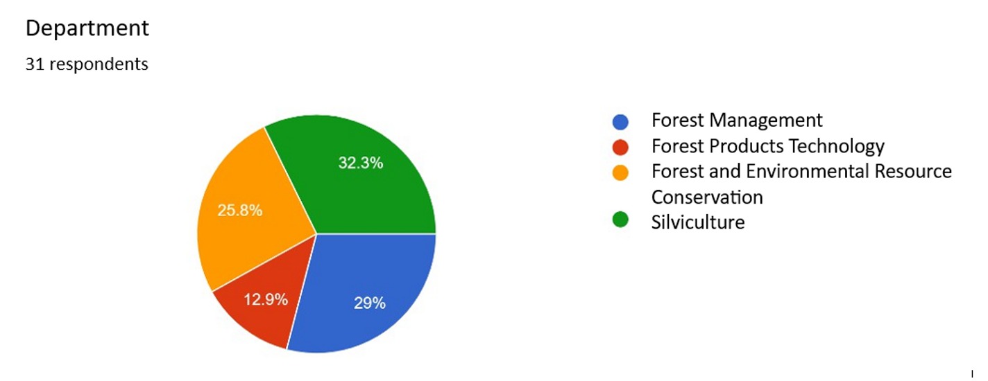 The aspirations in the preparation of this study are crucial for the benefit of students, particularly in the areas of academics, welfare, and facilities. The aspiration survey conducted from Thursday, October 24, 2024, to Monday, October 28, 2024, gathered responses from 31 participants, with the following distribution: 29% respondents from the Department of Forest Management, 12.9% from the Department of Forest Product Technology, 25.8% from the Department of Forest Resource Conservation and Ecotourism, and 32.3% from the Department of Silviculture. The 31 survey respondents also consisted of 71% from the Class of 59 and 29% from the Class of 60. The distribution of respondents across departments is considered to be well-balanced, despite varying numbers, as is the distribution of respondents from different classes. Both active classes within the faculty have participated, albeit with different respondent percentages.